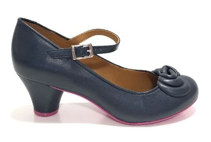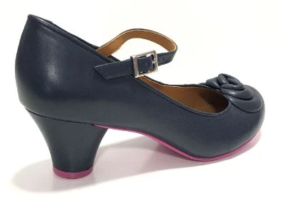 This classic mary-jane by Cristofoli Shoes is in an versatile navy blue leather, with sweet ankle strap and adorned with simple elegant bow detail across the toe