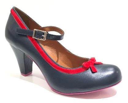 This vintage inspired Cristofoli Shoe is both timeless and elegant. This beautiful shoe is in a versatile navy leather, and it is adorned with a simple and very pretty red velvet ribbon, It also has an adjustable ankle strap for the perfect fit. It’s a fun twist to the classic pump