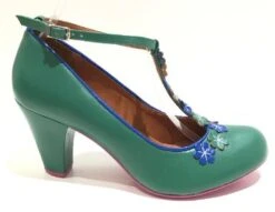 This vintage inspired Cristofoli Shoe is both timeless and elegant. Part of our Paris Boudoir inspired Collection, this beautiful shoe is in a delightful soft green leather, and it is adorned with a simple and very pretty black velvet ribbon, It also has an adjustable ankle strap for the perfect fit. It’s a fun twist to the classic pump
