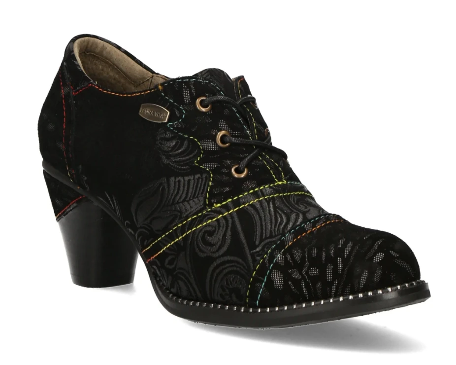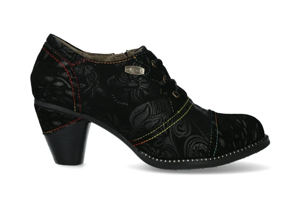 Looking for the perfect staple bootie, then look no further! This little bootie has it all with its great heel height, centre laces for the best fit and side access zip, all in a versatile black with embossed floral accents for added flair!