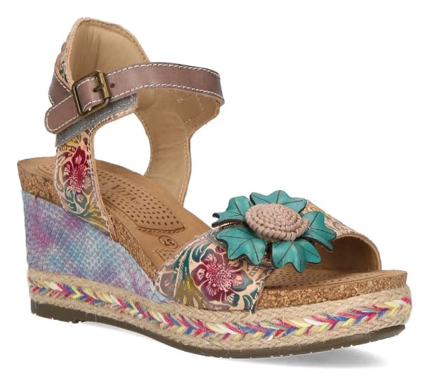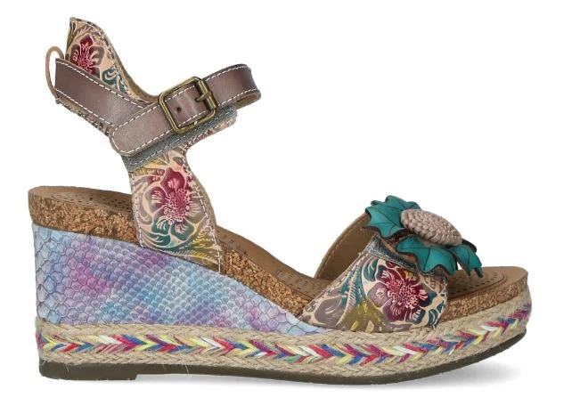Beautiful Wedges by Laura Vita France, perfect for the warmer weather. These great wedges are as practical as they are gorgeous, with their adjustable ankle strap and adjustable placement over the top of the foot to fit any width. They are adorned with a super sweet flower that adds a fun little twist!