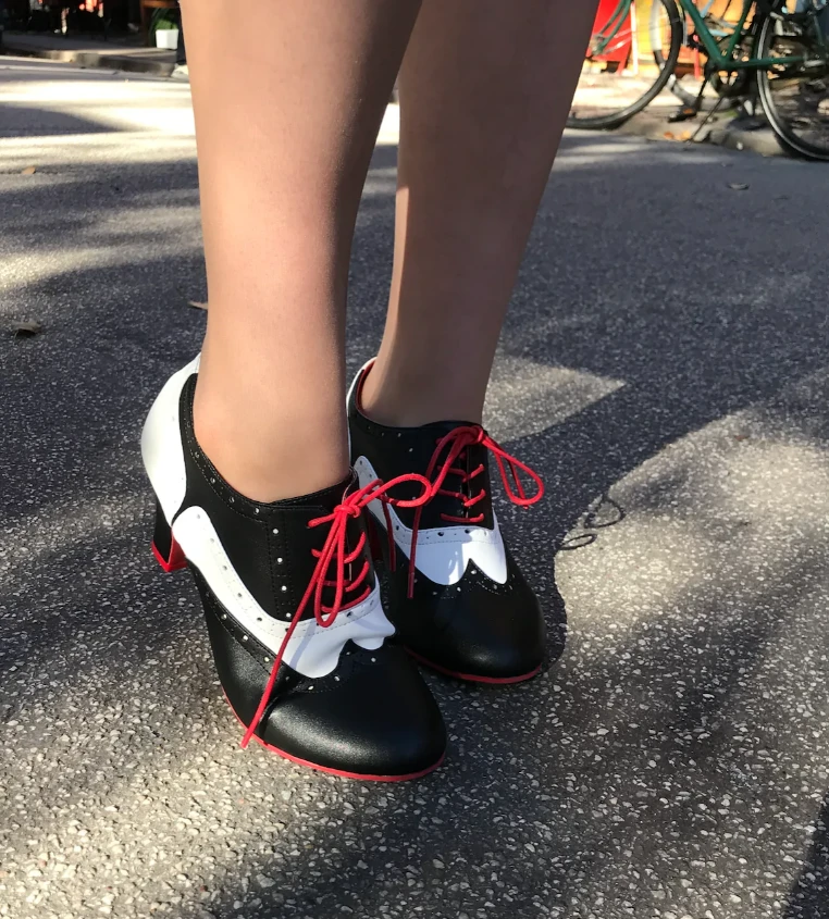 These lace up booties are Lola Ramona Staples. This classic little shoe is done in black and white, with a pop of colour in the red laces, which is so versatile for your entire wardrobe!