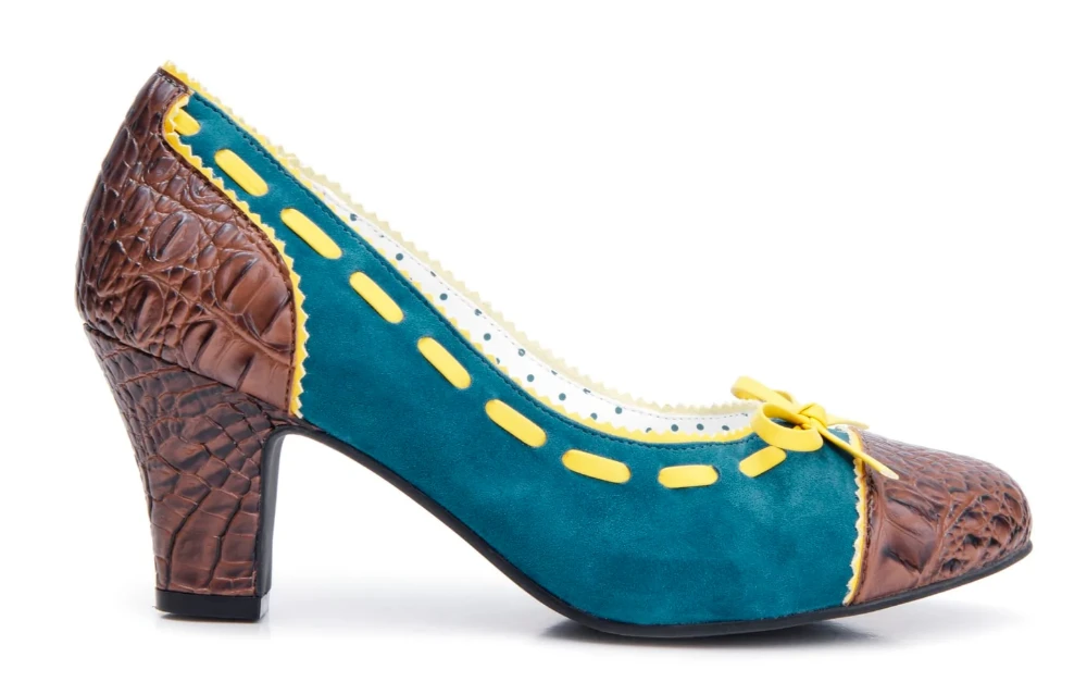 Oh so chic mid heel by Lola Ramona. This beautiful vintage inspired colour combination will make a striking accent to any outfit.Â