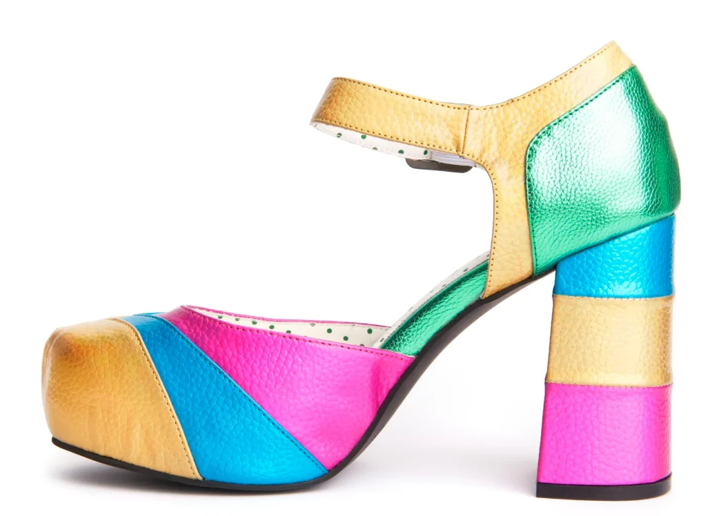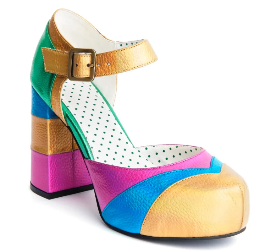 Chloe is a new style with multiple colors and a holographic shine. This 70’s inspired platform is sure to turn heads!