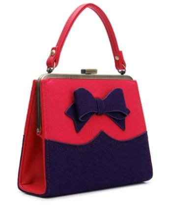 Add a pop of colour to your wardrobe with this vintage style handbag, in a stunning red and purple combination.Â