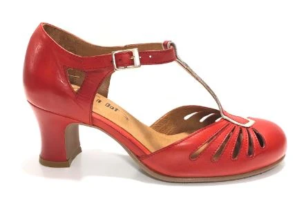 These Beautiful vintage inspired mid heels are in the softest leather that is just heaven on your feet! This pair is in a vibrant red leather with a soft pink piping.